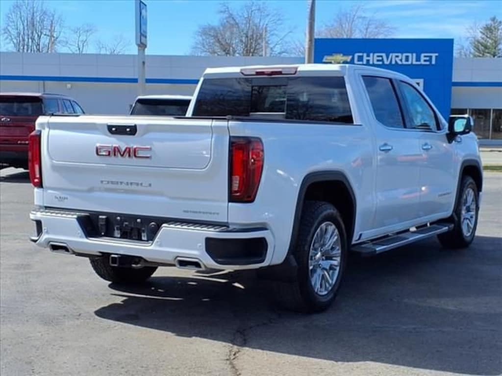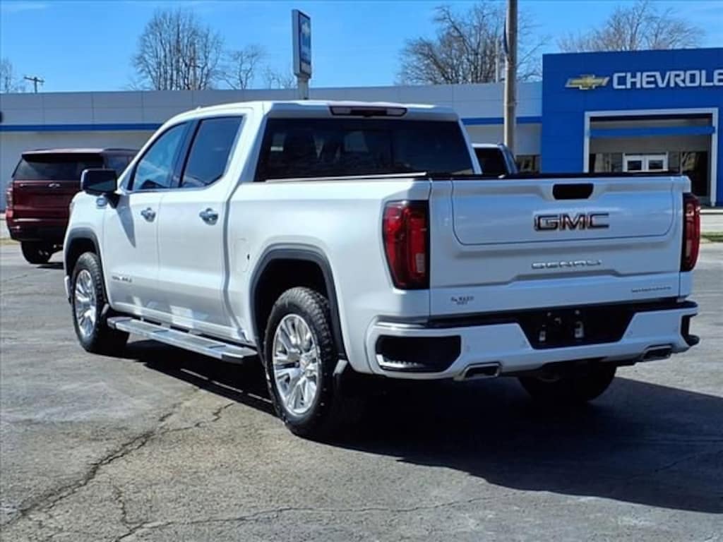 Sierra 1500 Denali, 4D Crew Cab, 3.0L I6, 10-Speed Automatic, 4WD, White Frost Tricoat, Jet Black Leather, 3.23 Rear Axle Ratio, Alloy wheels, Bed View Camera, Buckle to Drive, Color-Keyed Carpeting Floor Covering, Deep-Tinted Glass, Delay-off headlights, Denali Premium Suspension w/Adaptive Ride Control, Forward Collision Alert, Front fog lights, Front Rain-Sensing Wipers, Front reading lights, Fully automatic headlights, Garage door transmitter, Genuine wood console insert, Genuine wood dashboard insert, Genuine wood door panel insert, Heated door mirrors, Heated Driver & Front Outboard Passenger Seating, Heated front seats, Heated rear seats, Heavy-Duty Air Filter, Hitch Guidance, In-Vehicle Trailering System App, Integrated Trailer Brake Controller, IntelliBeam Automatic High Beam On/Off, LED Cargo Area Lighting, Memory seat, Navigation System, Perimeter Lighting, Power Door Locks, Power driver seat, Power Front Passenger Windows w/Express Up/Down, Power Rear Windows w/Express Down, Power Sliding Rear Window w/Rear Defogger, Power windows, Premium audio system: GMC Infotainment System, Premium Bose 7-Speaker Sound System, Push Button Start, Rain sensing wipers, Remote keyless entry, Remote Vehicle Starter System, Steering Wheel Audio Controls, Steering wheel mounted audio controls, Telescoping steering wheel, Tilt steering wheel, Traction control, Trailer Camera Provisions, Trailer Side Blind Zone Alert, Trailering Package, Ventilated Driver & Front Passenger Seats, Ventilated front seats, Wheels: 20 x 9 Multi-Dimensional Polished Alum, Wireless Apple CarPlay/Wireless Android Auto. 23/27 City/Highway MPG